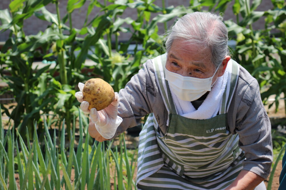 「介護員の方や看護師の方がみなさん優しく明るいのがいいですね。こちらも元気をもらえます。テーブルを拭いたり、お茶を出したり、できることはやらせてもらい、少しでも人の役に立ちたい思っています。」