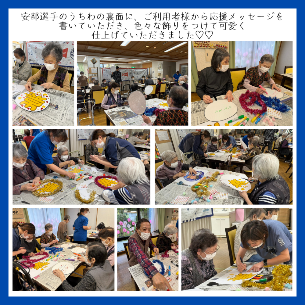 その後は、ご利用者様から安部選手へ「がんばれ!」の気持ちを込めて、メッセージを✍