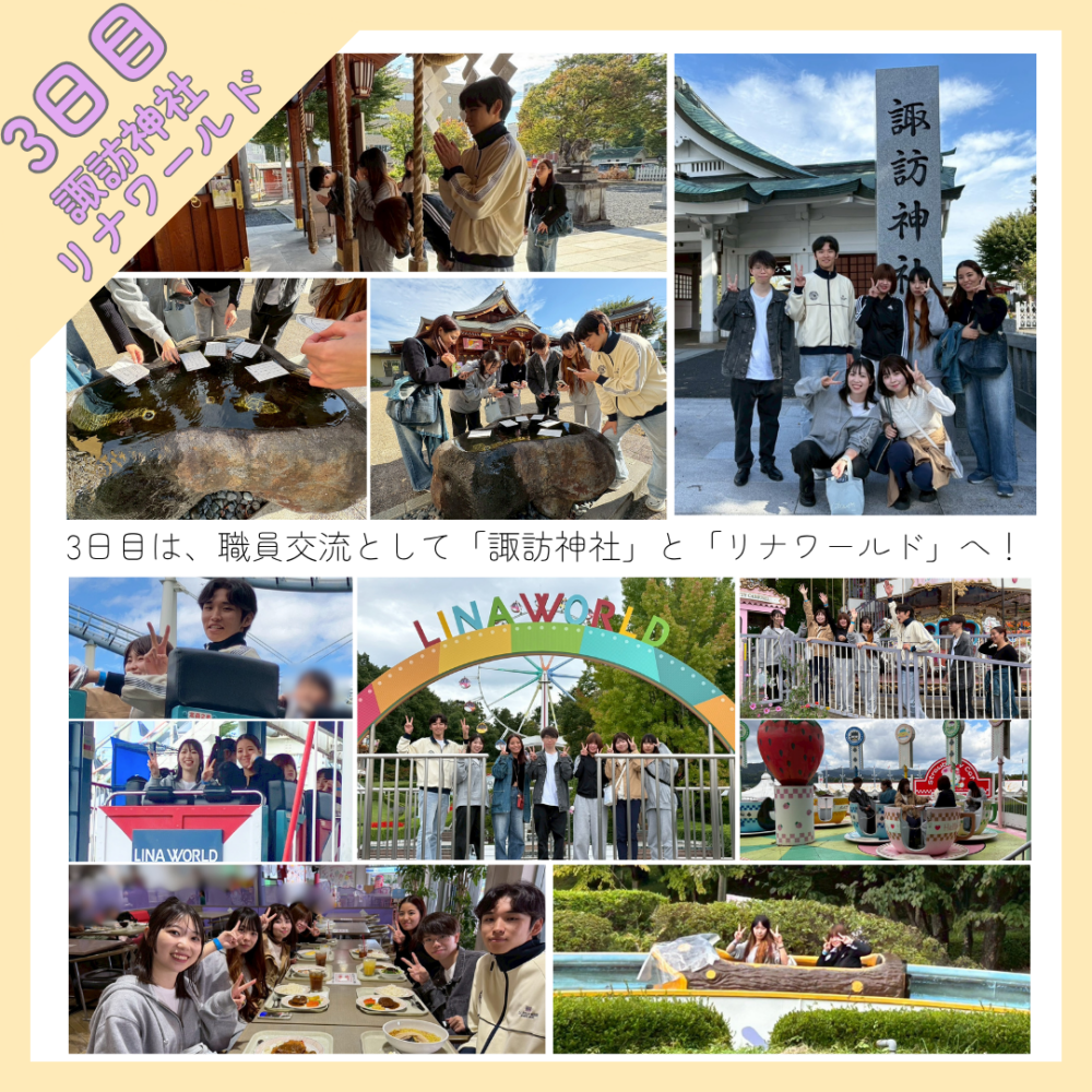 3日目は、職員交流として「諏訪神社」と「リナワールド」へ!