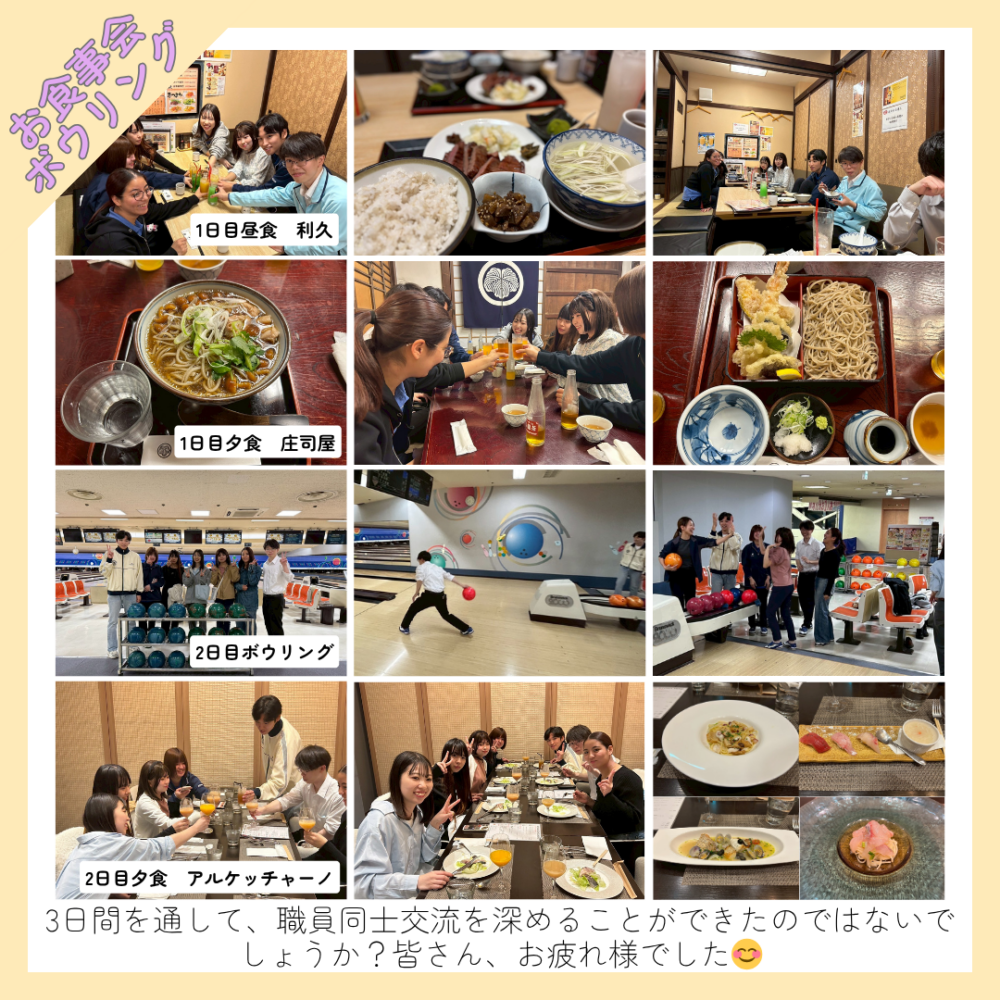 3日目以外にも、夕食会やボウリング等を通して交流をしていただき、とても有意義な3日間となりました。 参加された職員の皆さん、お疲れ様でした!