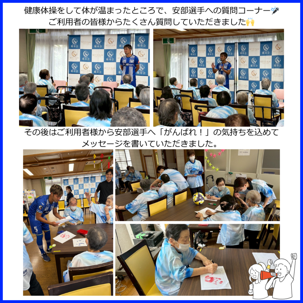 その後は、ご利用者様から安部選手へ「がんばれ!」の気持ちを込めて、メッセージを✍