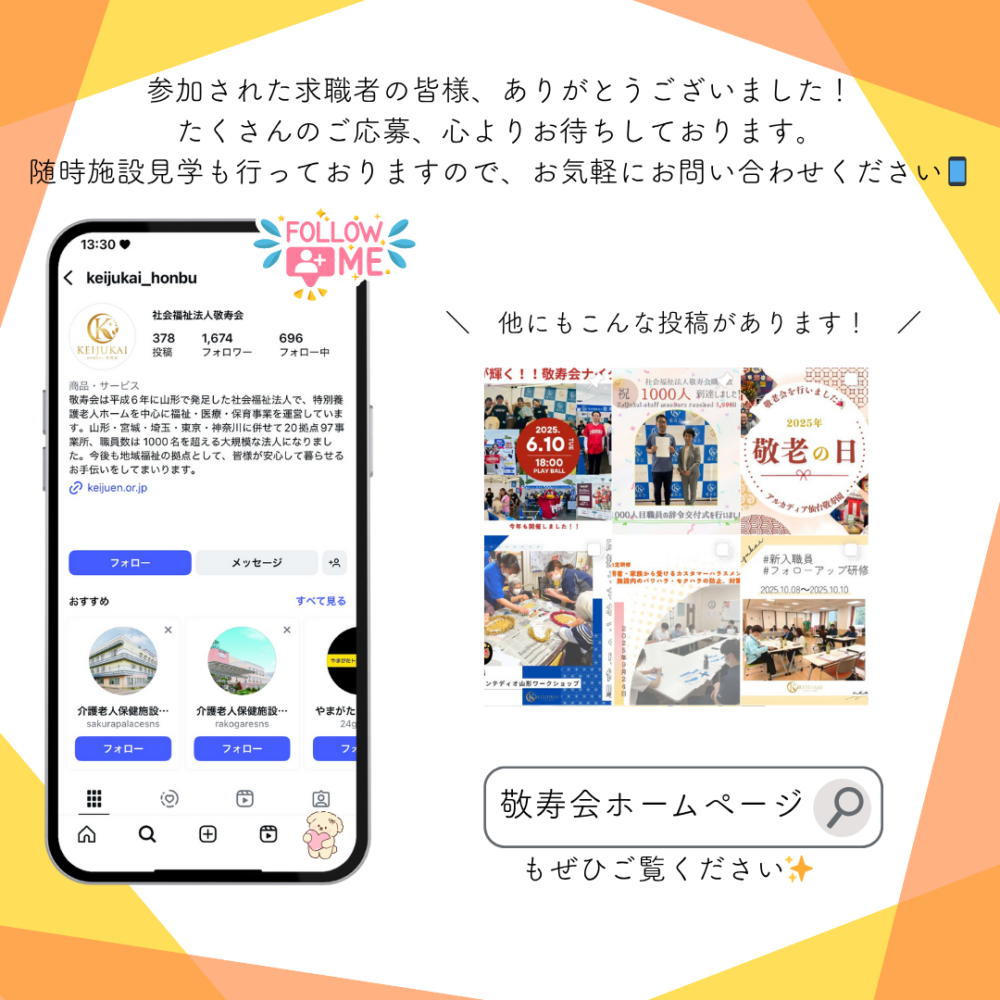 少しでも敬寿会にご興味を持っていただけましたら嬉しいです☺
