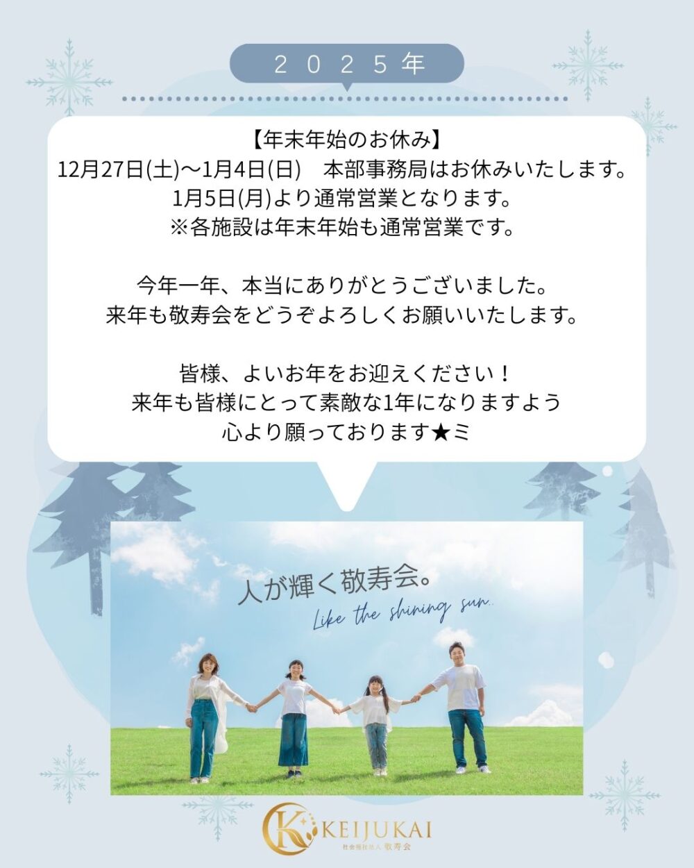 12月27日(土)~1月4日(日) 本部事務局はお休みいたします。