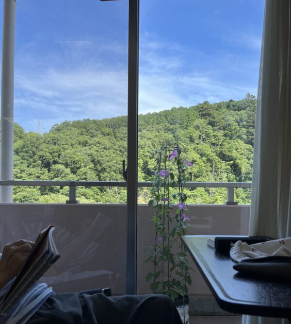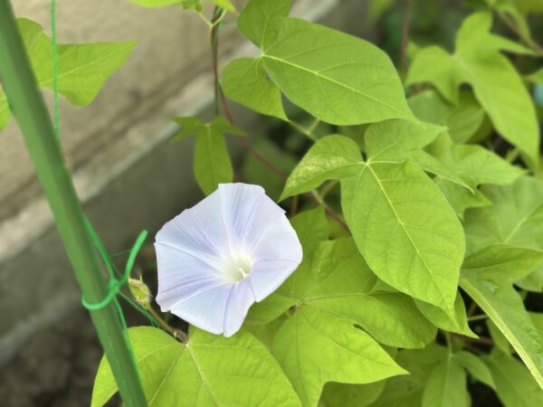 室内から気軽に楽しめるよう、ベランダにも朝顔を一鉢置きました。