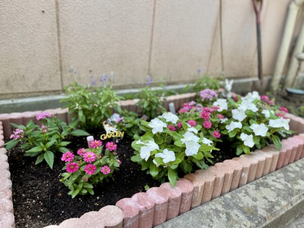 花壇のお花もぐんぐん大きくなり、植えた当初の倍以上の大きさになりました。