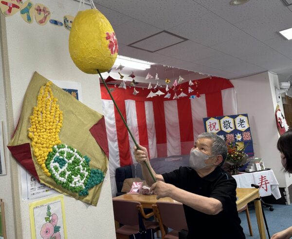 めでたく米寿を迎えられたご利用者様には手作りのピニャータを割って頂き、国宝 大崎八幡宮のお守りを贈呈しました。