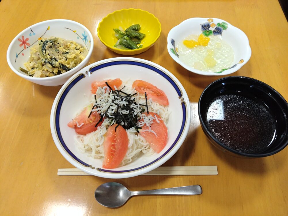 そうめんのつゆには梅干しを加えていてさっぱりと食べられたかと思います。皆様そうめんはお好きなようでよく召し上がっていました。