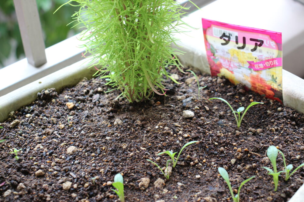 そんな中2階のベランダではダリアが種から芽をだしています。