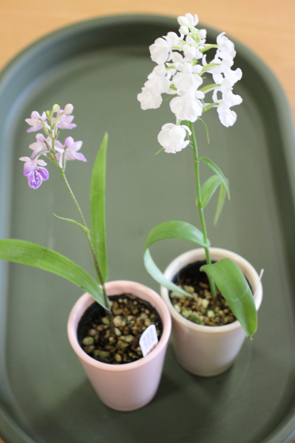 真ん中写真の白い花はランの仲間で「夢ちどり」と言います。