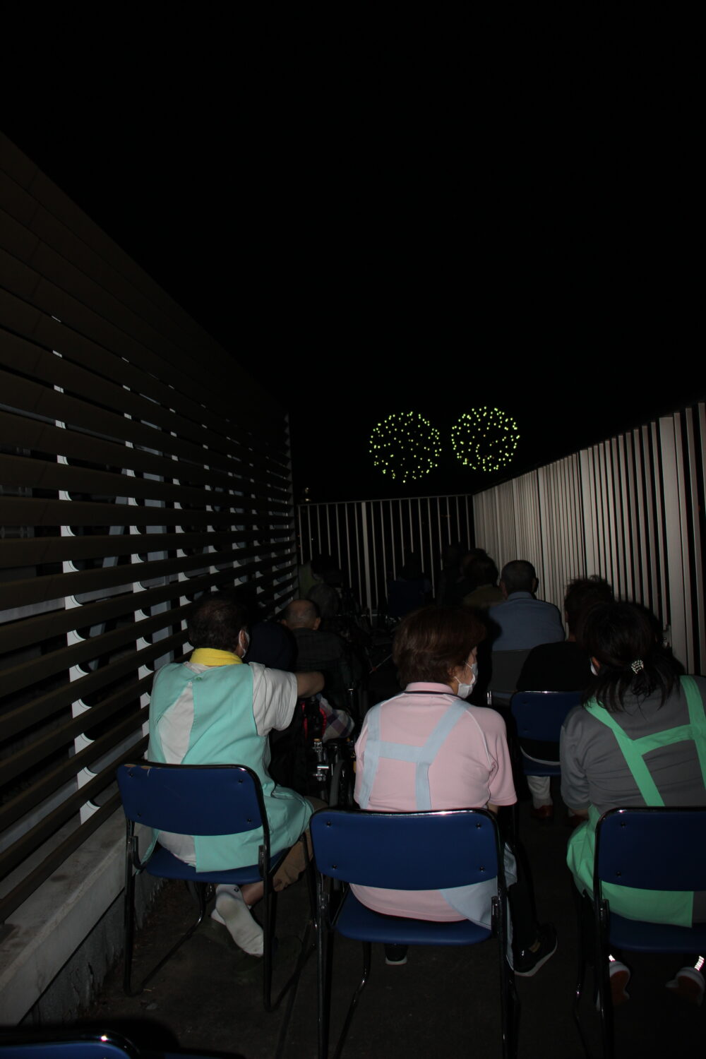 バイキングを楽しんだ後は花火観賞です。当施設の屋上から見え毎年恒例となっています。