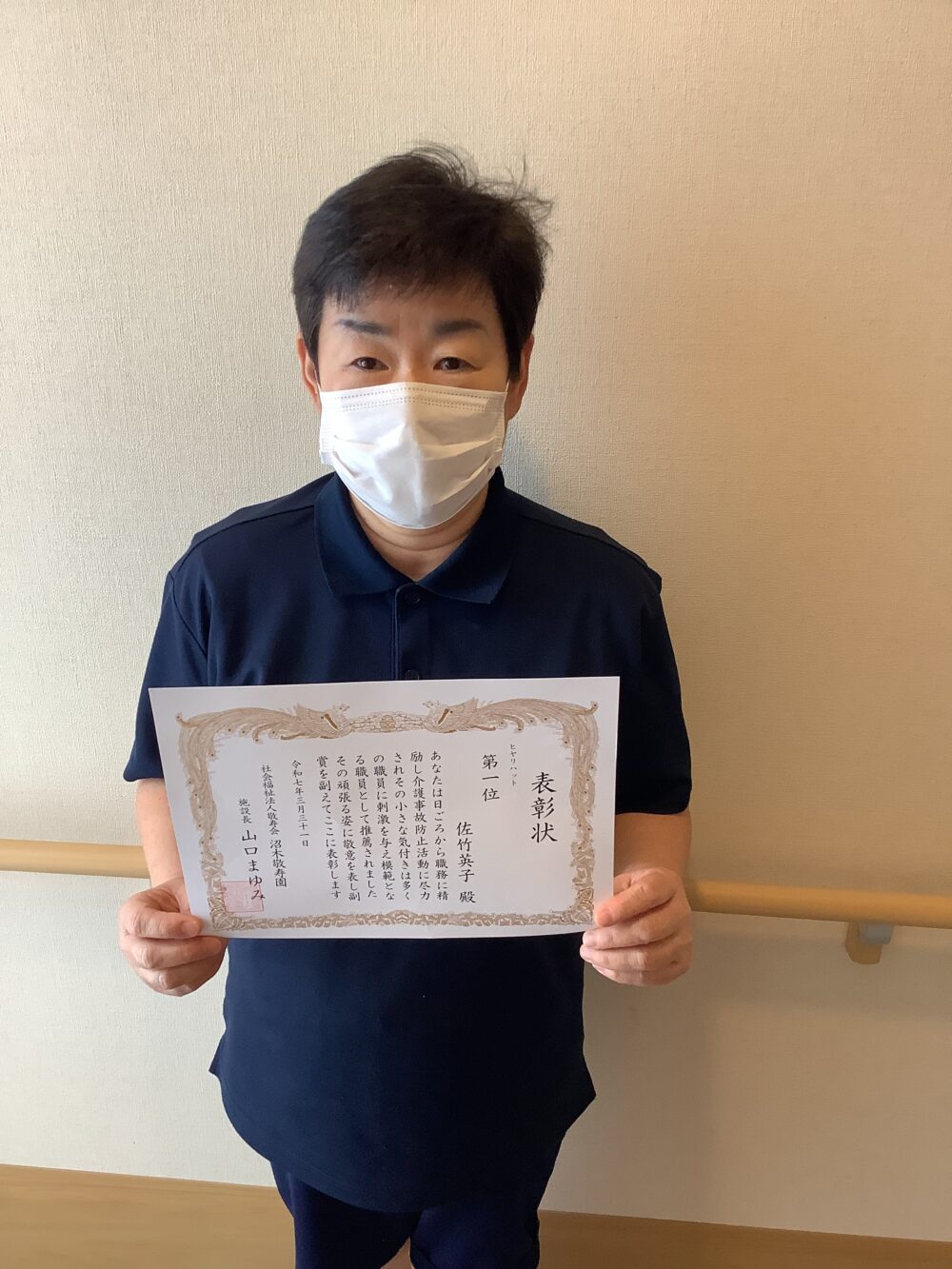 施設内で事故予防のための、気づきとなるヒヤリハットの表彰を行いました。たくさんの気づきから事故を未然に防ぐ大切な取り組みです。