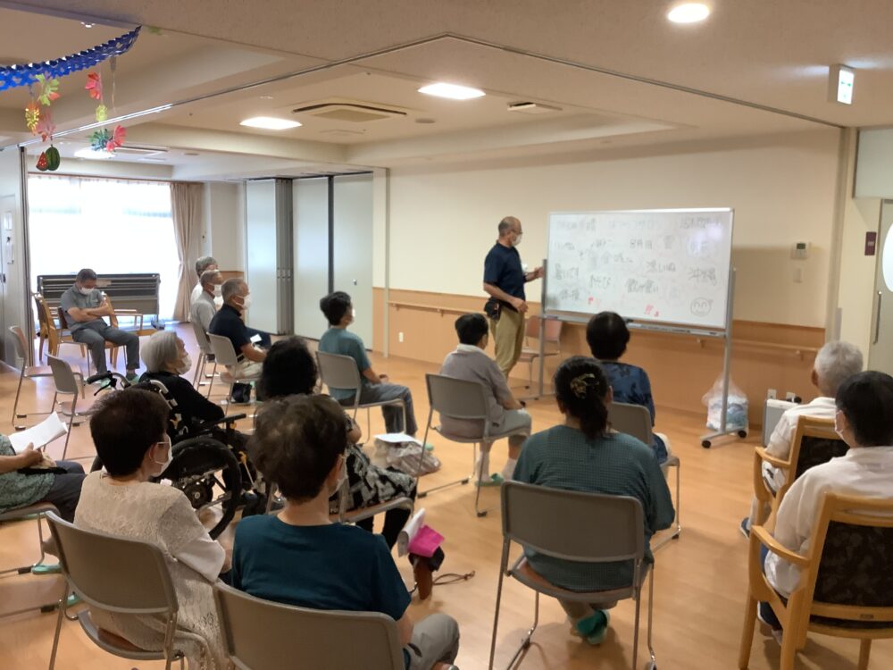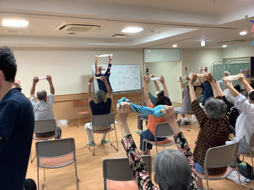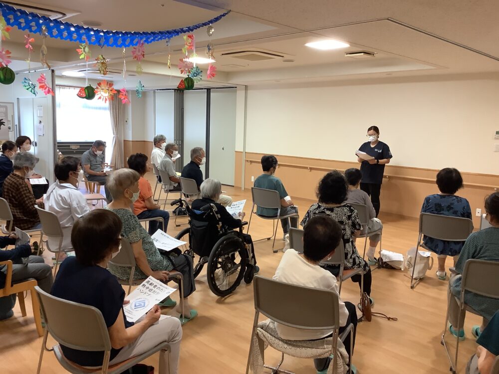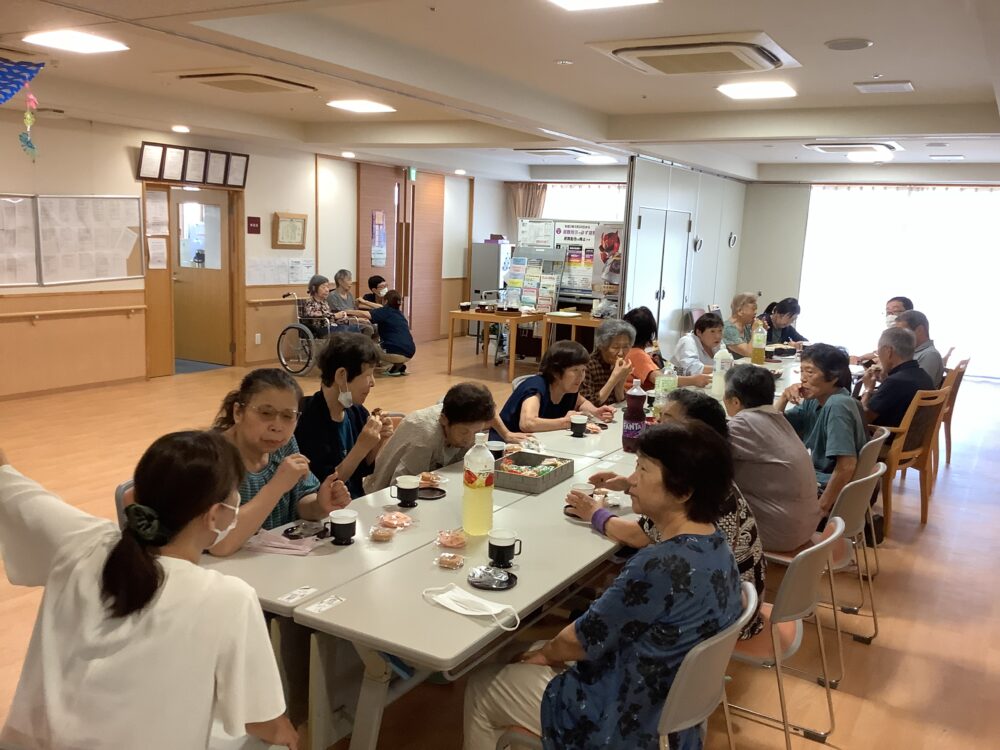 体操を行い、熱中症に関するお話させてもらいました。地域の皆さまと一緒に会話を楽しみながらお茶会をしました。😄
