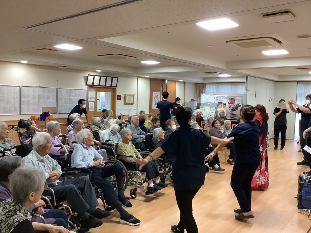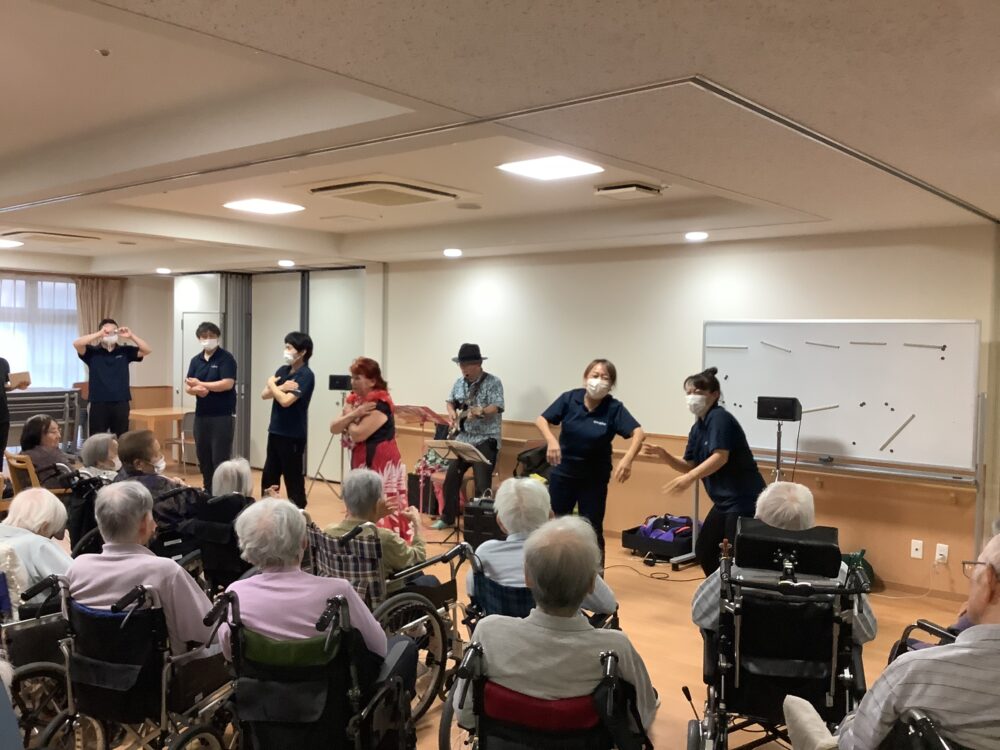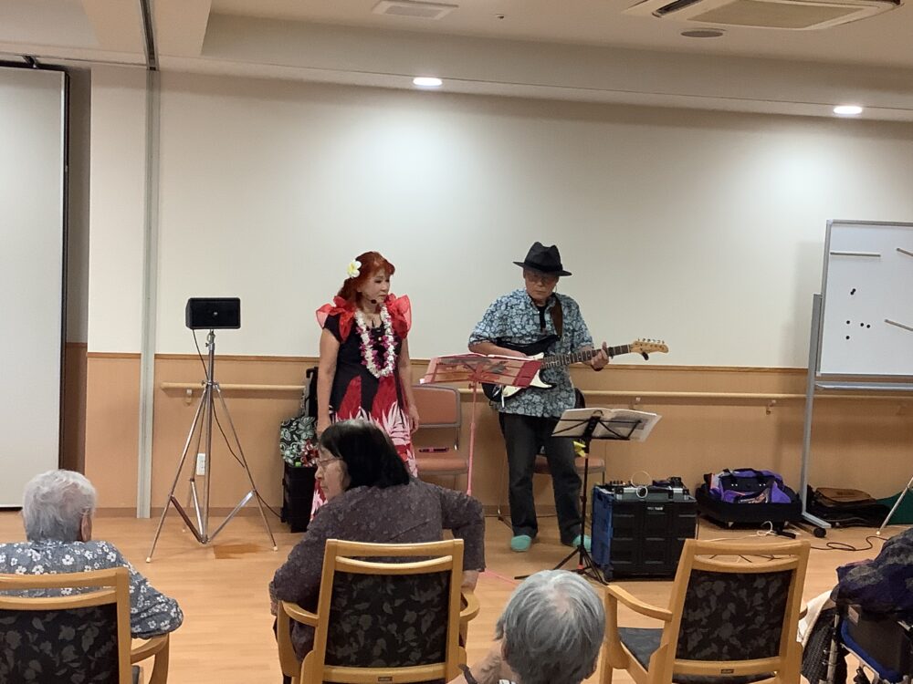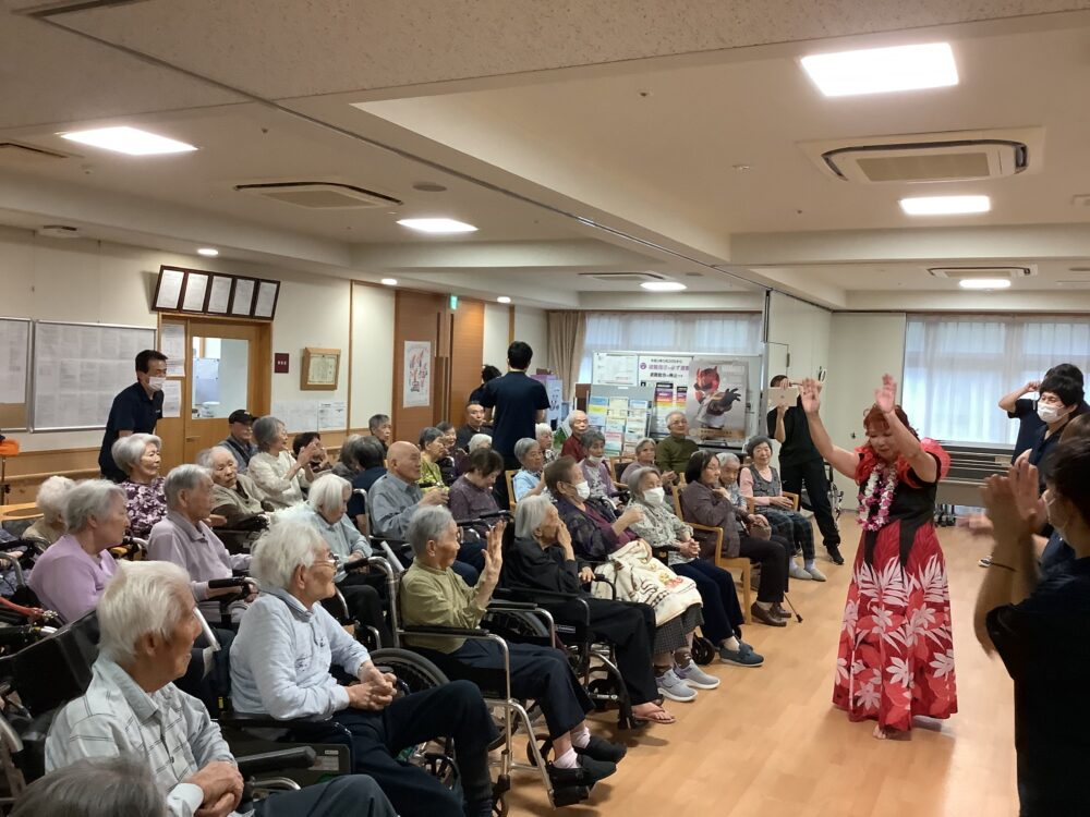 歌手による、歌とフラダンスを職員の踊り手も加わり、みなさんと一緒に楽しませていただきました😃