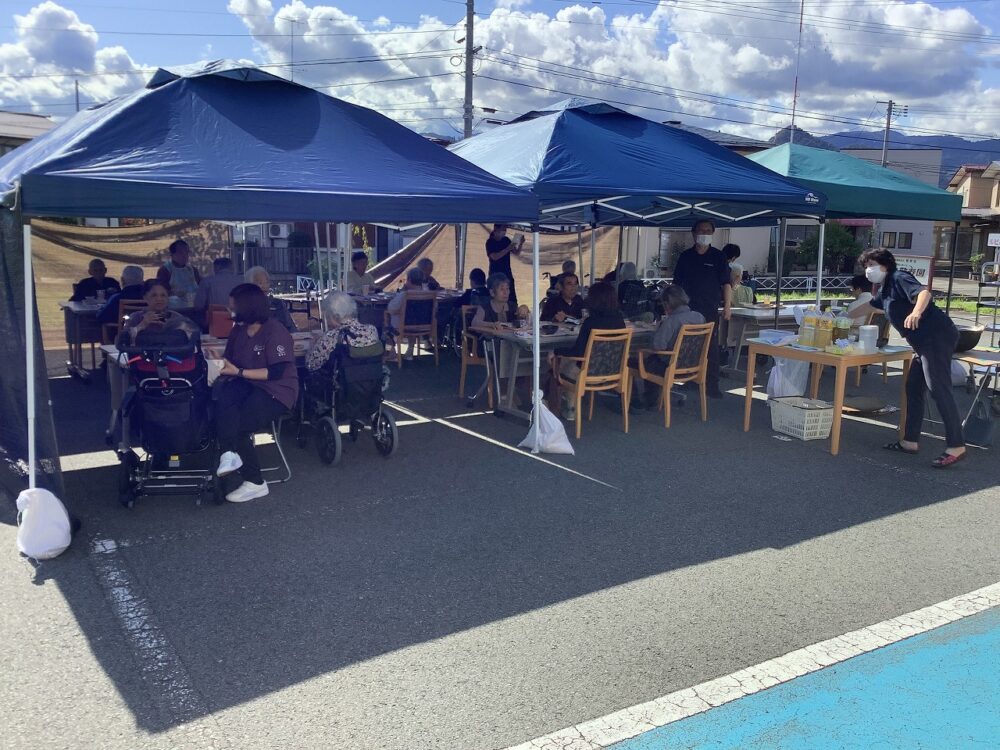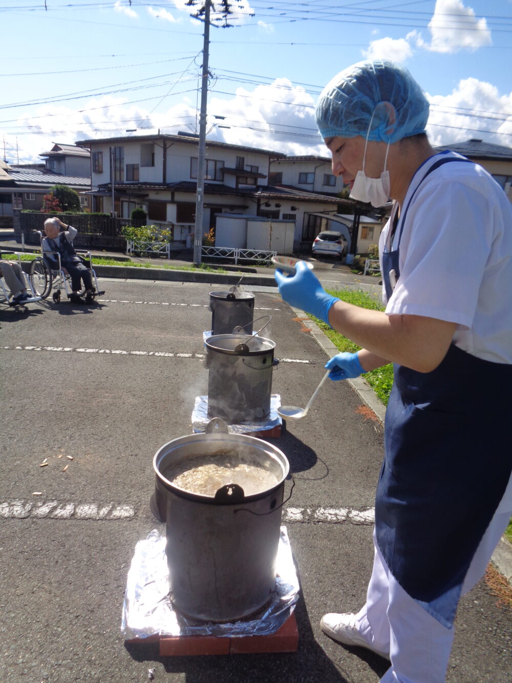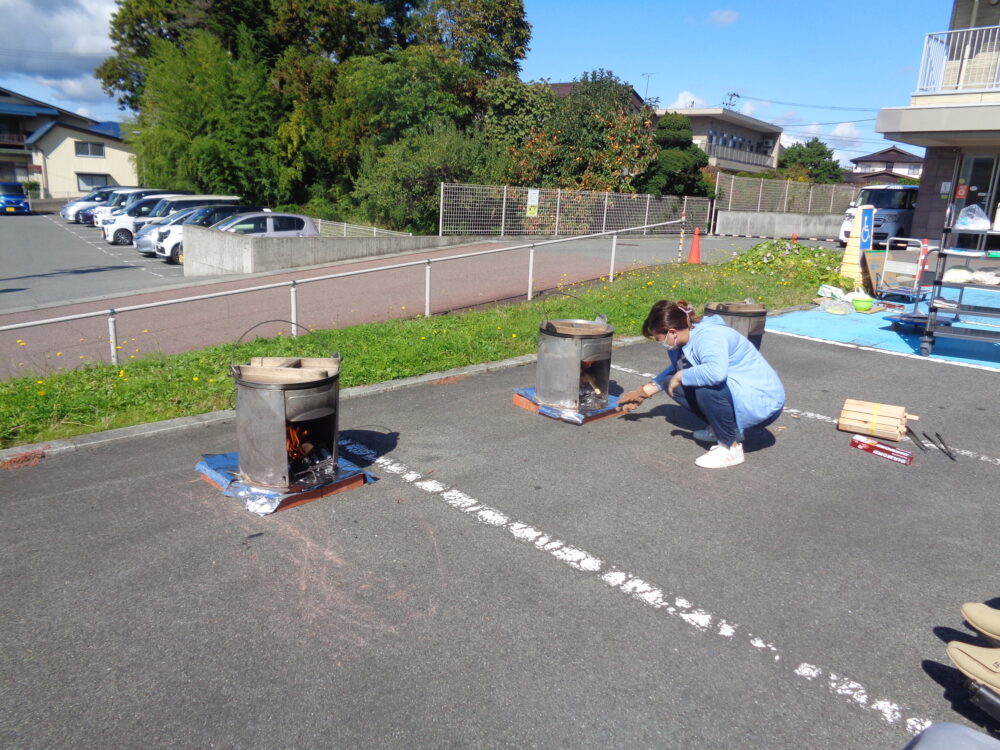 天気にも恵まれ青空の下で薪と、しょうゆのいい匂いが漂い、「おいしそうだね」とたくさんの