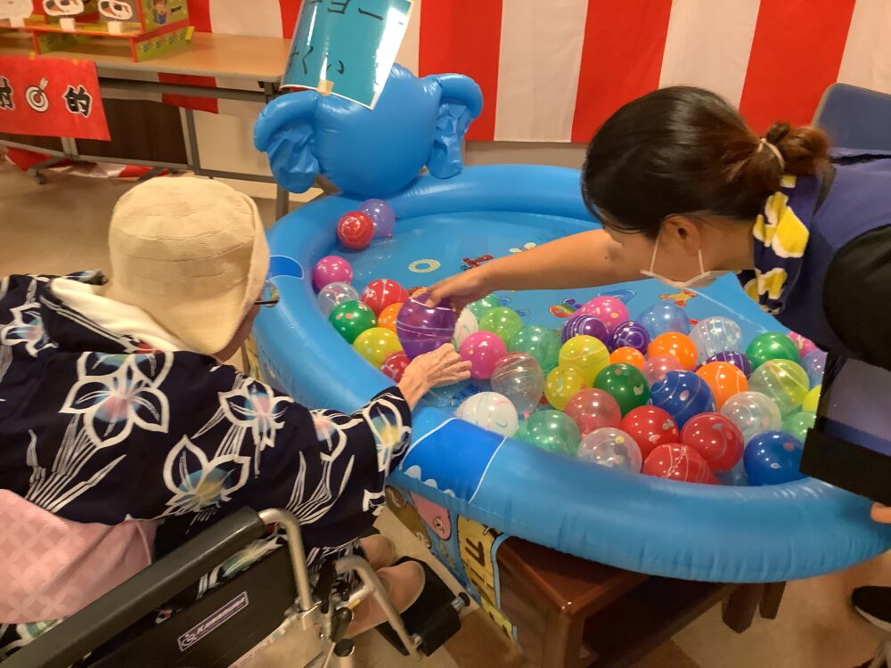 当日はご入居者様に浴衣やはっぴを着ていただいたほか、職員も数名浴衣を着用しました。