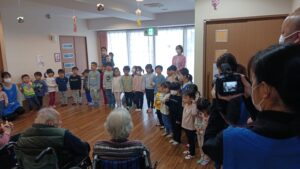 当日は保育園の子どもたちが来所し、元気いっぱいの歌や手遊びを披露してくれました。かわい