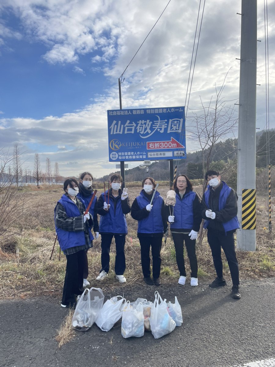 総勢7名で道路の両側、清掃活動(ゴミ拾い)。