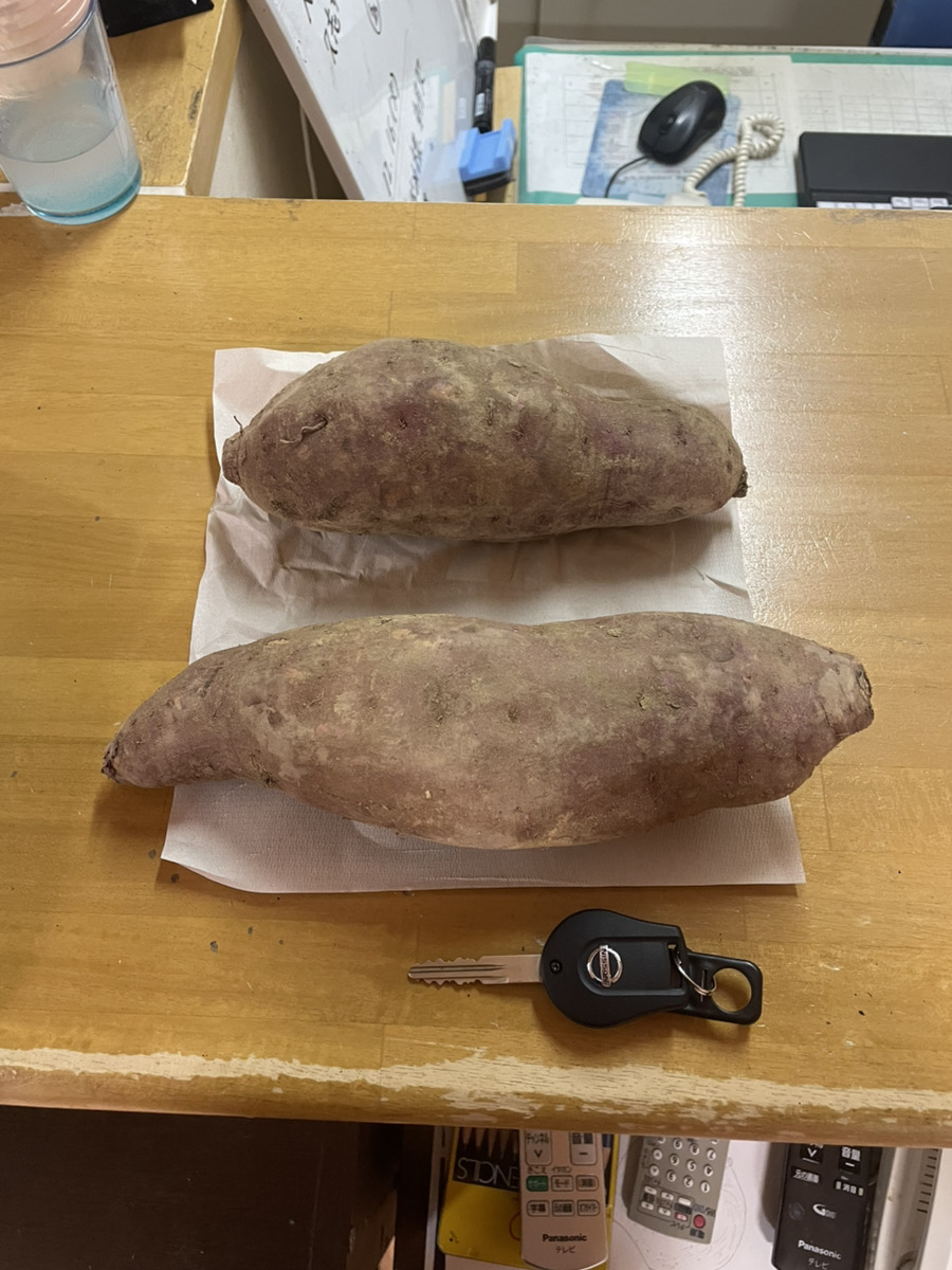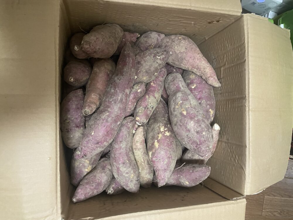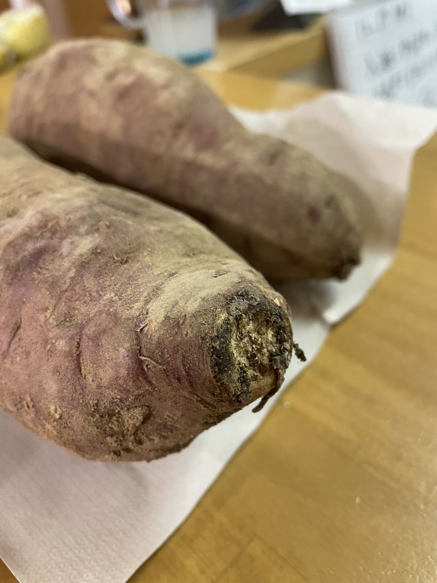 岡山県津山市から、職員の知人と89歳のお母様が丹精込めて育てた立派なさつまいも「紅はるか」、約1,000㎞の道のりを経て9月に山形(法人本部)に届きました。