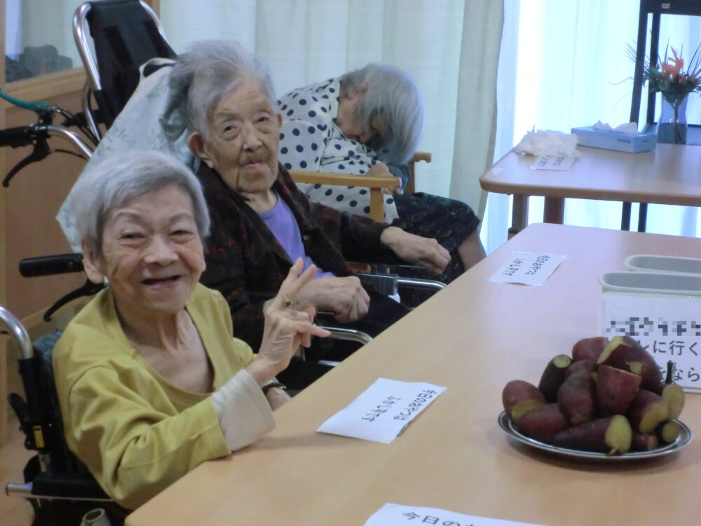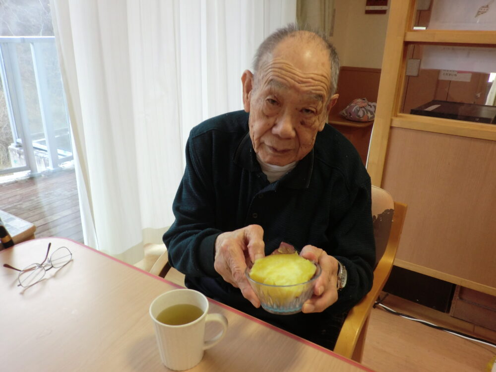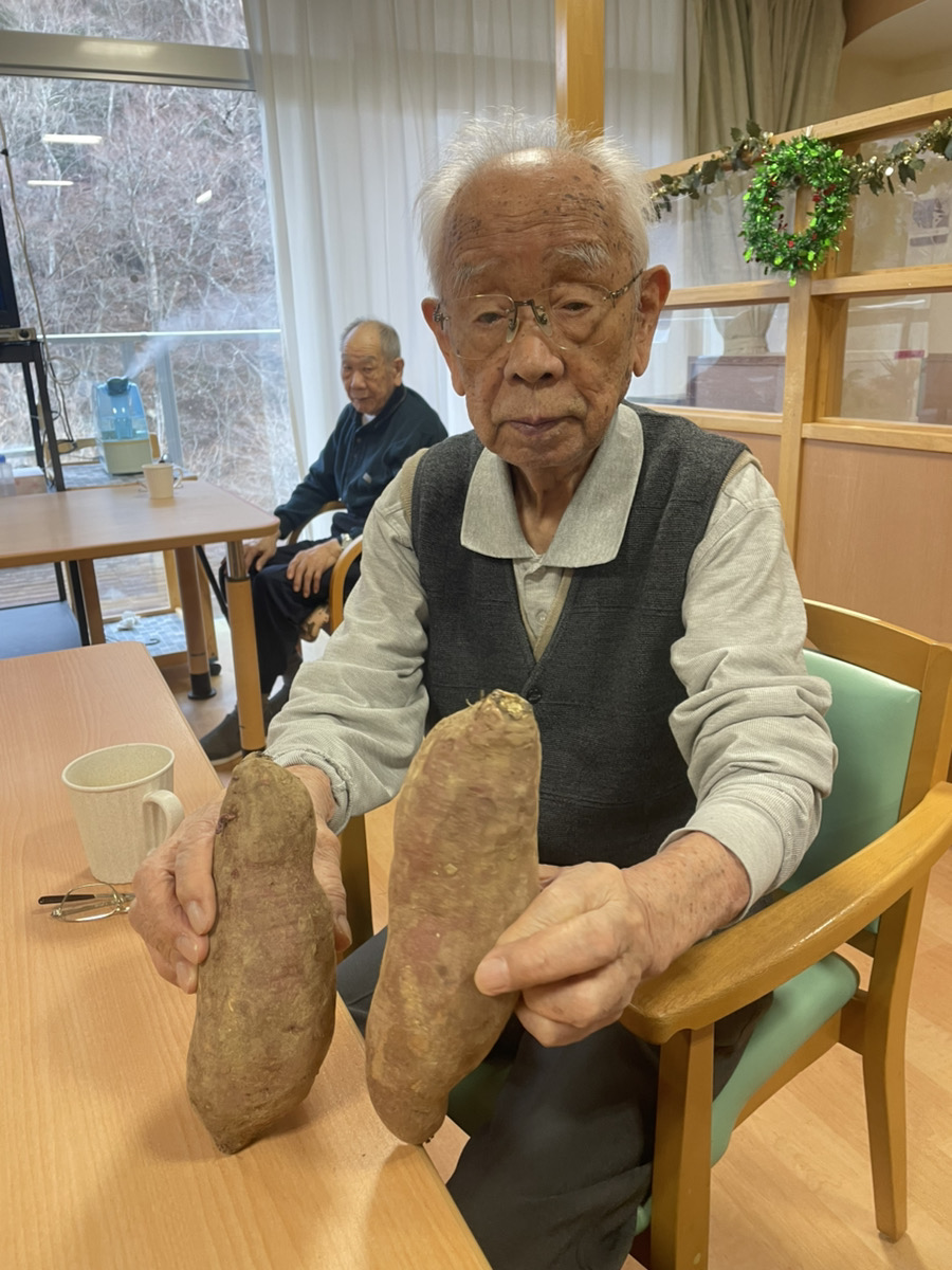 「いや~、こりゃ立派!旨そうな芋だな!」と利用者さまの笑顔。