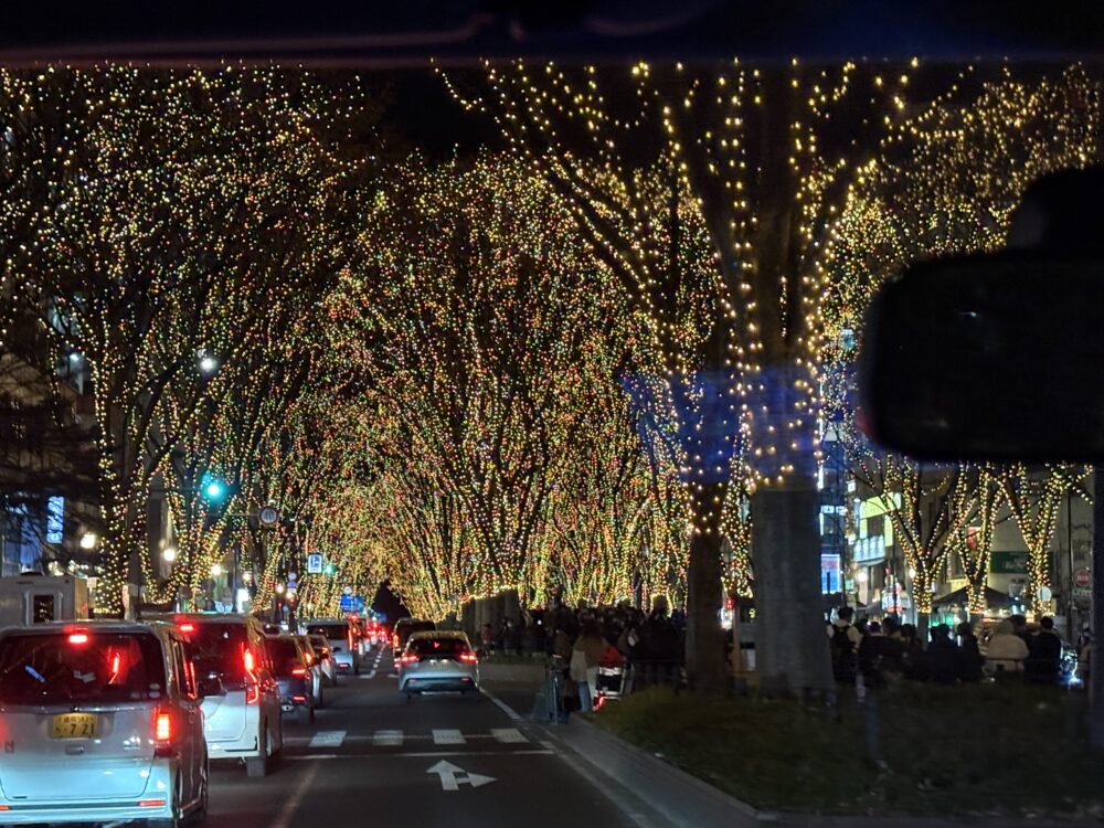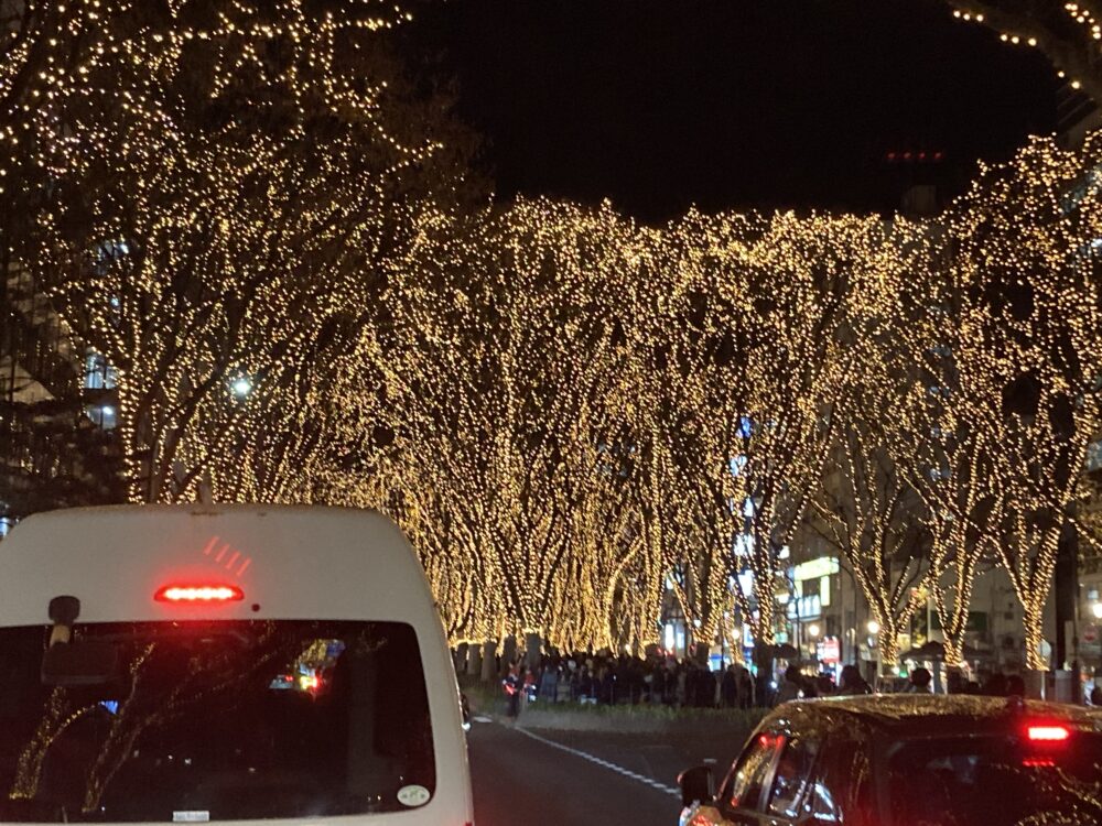 「わ~~~、きれ~~~い!」と、車内から歓声が上がります。渋滞のおかげで、車窓からゆっくりと「光のページェント」を堪能できました。