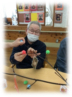 利用者様に紙粘土を丸めていただき、水木に刺して飾りました!