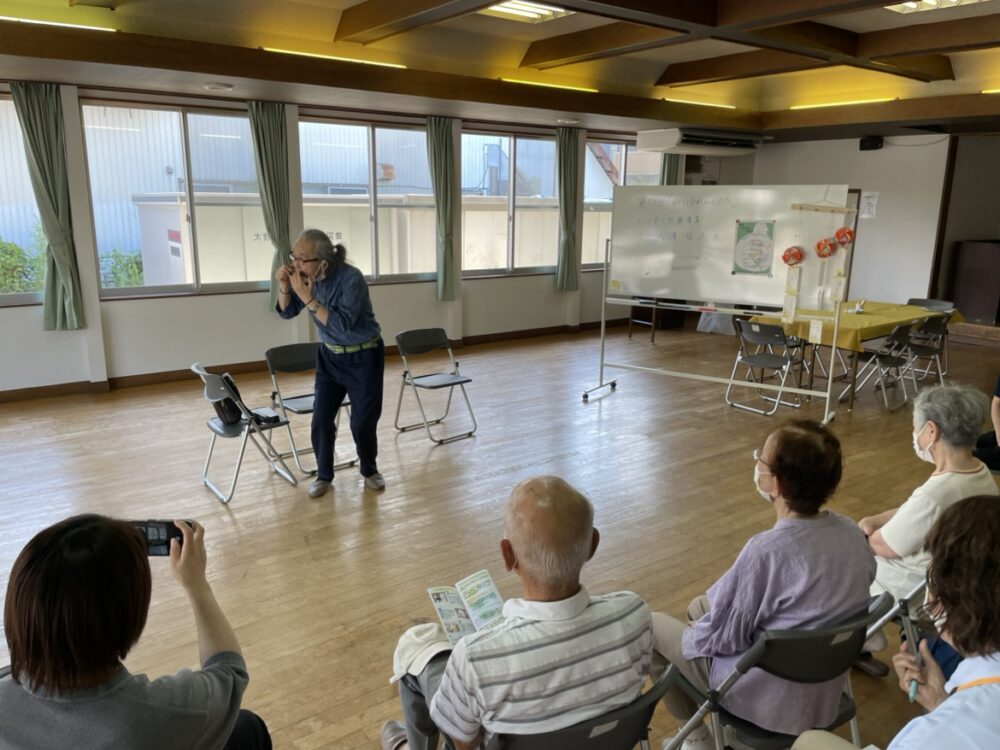 今回は、グループホームのご入居者様も参加され、ご自身の特技であるハーモニカ演奏を披露してくださいました。