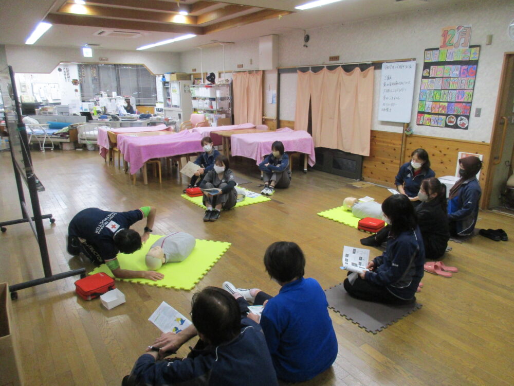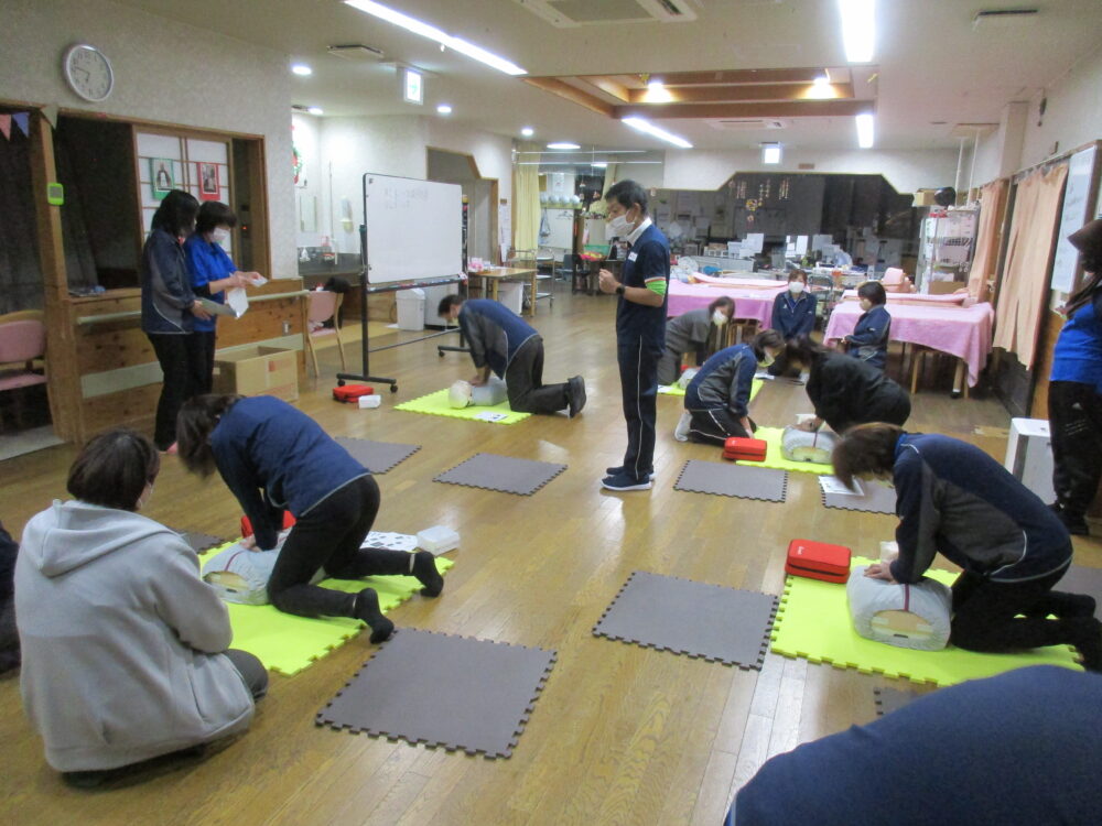 12月中旬、山形敬寿園にて職員を対象としたAED(自動体外式除細動器)研修を実施しました。