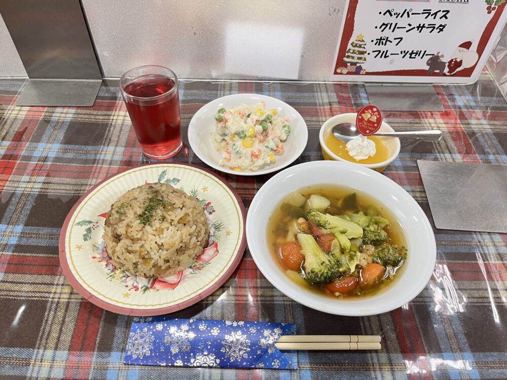お食事は、クリスマス特別メニューとして、各ユニットの職員が「皆さんに喜んでいただきたい」という想いを込めて考案。