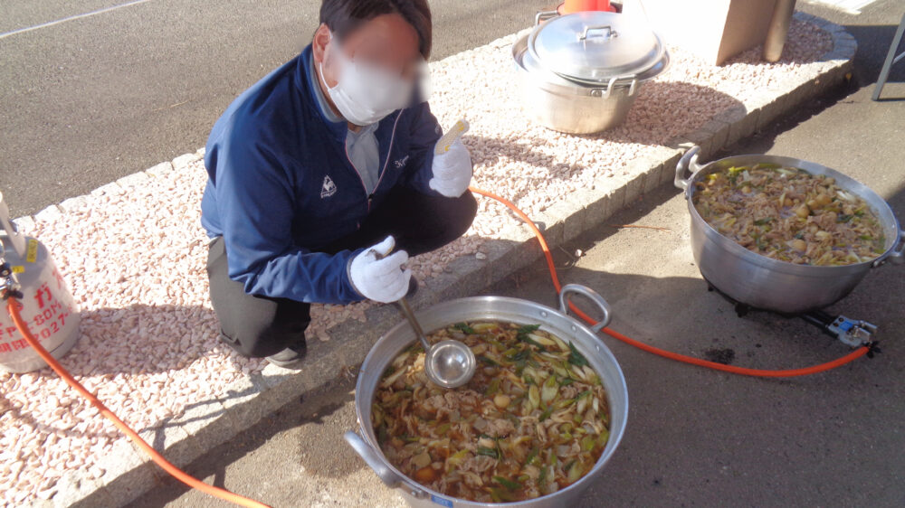 大きなお鍋2つで芋煮を作り、最後の大事な味付けは毎年施設長にお願いしています✨